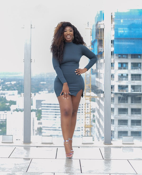 Spice up the evening party or date with this gorgeous hunter green color Goddess Dress. The warm knitted construction dress features full sleeves, a round neck, and a slight side cut. A soft and stretchy fabric dress gives you a warm and comfortable feeling. This relaxed silhouette dress goes perfect with high heels and matching jewelry.(Please size down for a more tighter fit)