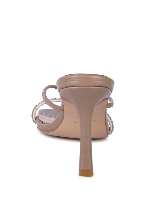 Mid Heel sandals withrhinestone encrusted strap looks oprgeous on feet, the square toe design has toe ring like detail which gives good grip. Crafted with great finish, design and construction - this casual style shoe with cushioned insole is stylish and trendy.