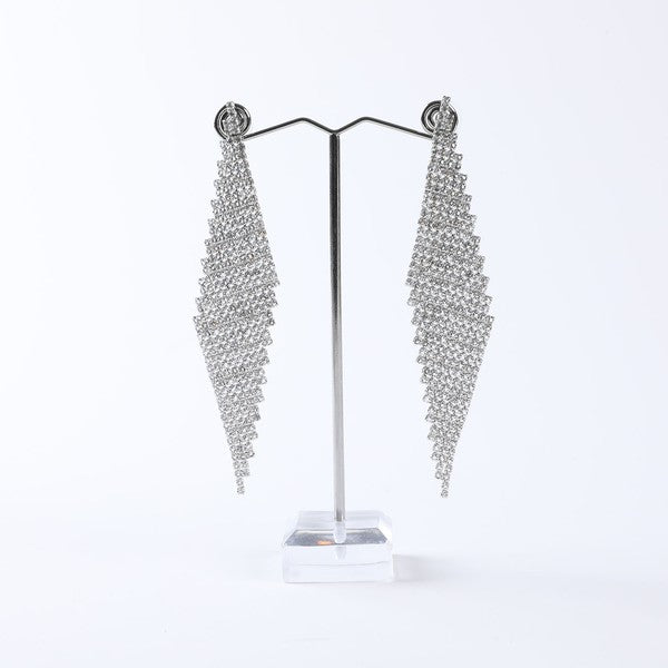 - Long earring - Rhinestone sparkly earring - Outgoing/ special event earring - Elegant and luxurious - Perfect for bride's/ bridesmaids - Medal hardware